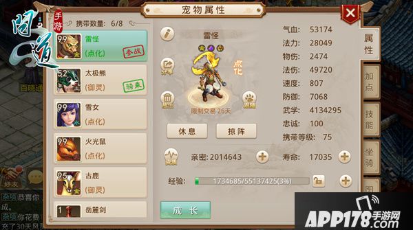 宠物方面,最好的防守就是进攻,每个人最少准备3-4只攻宠,推荐力宠(点化变异或者云兽,有乾坤罩,不推荐螃蟹,螃蟹血量过少,抗不过法术连击),力宠攻击一次出技能可以打10W+,再一个队伍要准备一只全体宠物(血量在8.5万+)当然,有几只变异宠物就最好了。