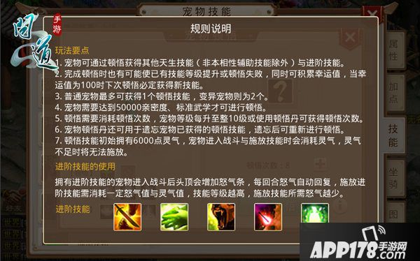 《问道》手游宠物技能今日开启顿悟系统,可通过顿悟技能获得新的天生技能和进阶技能, 而进阶技能里含有的新开启的四个减益控制技能,对优化战斗格局有非常大的影响,宠物的作用将会逐渐的由输出转变为辅助,巧妙的策略和配合,战斗宠物力简直爆棚。