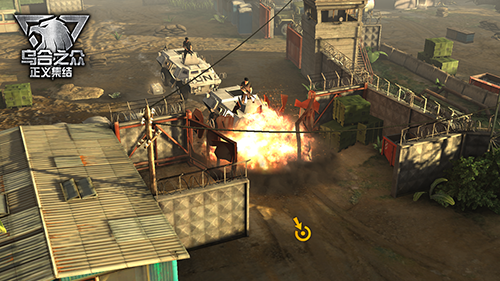 战争游戏的乐趣既在于可控的策略性,也在于直面战场的刺激和体内破坏因子的爆发。《乌合之众:正义集结》在战斗的过程中就随时随地可能会“误伤”到周围无辜矗立的建筑物们,伴随着爆炸、空袭等具有较大破坏性技能的实施,画面上随之破碎四溅的场景建筑就带来一种难以言喻的快感,这样的场面效果在手机游戏中可以说是难逢敌手的。