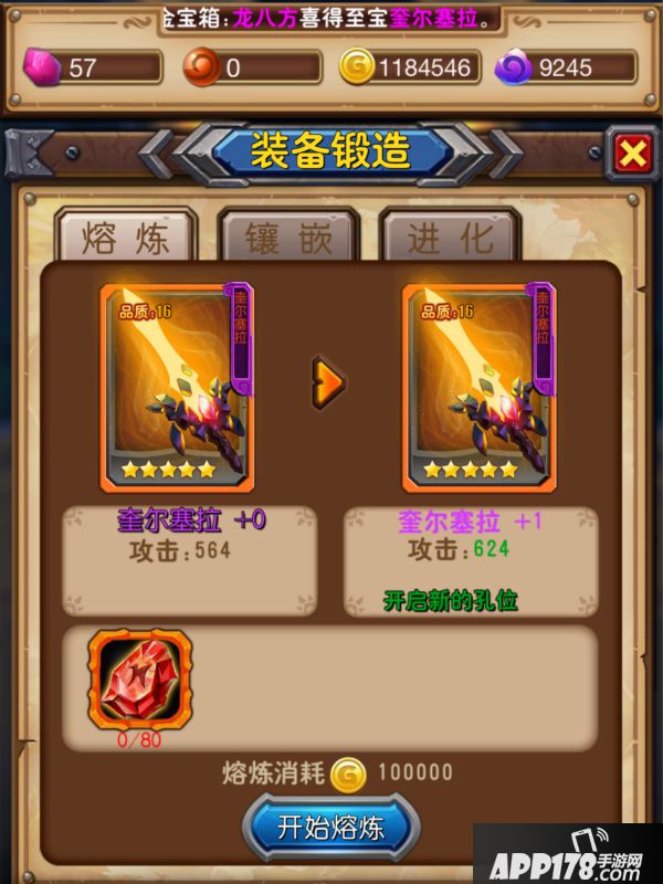 熔炼:熔炼需要消耗相同的装备或者原石,来提高装备的基础属性值。只有强大的紫色装备才能进行熔炼提升。