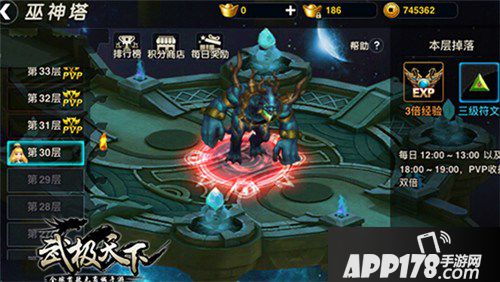 由于《武极天下》手游无副本无体力限制,玩家可尽情周游全地图秘境,不但可以追求等级速度,更可以获得大量物资及装备。途中偶遇的“盗宝小妖”会让你感到不虚此行!除了野外多人秘境,巫神塔也成为了重要突破口,前30层PVE层通关后有海量经验及橙色装备作为奖励,31-40层更晋升到PVP层面,通过1V1人人即时PK战获得的功勋可以兑换真原石来修炼升级,而巫神塔的1V1对战是讲究操作和策略的,pvp过程中还会出现怪物来捣乱,击杀怪物获得的buff会有助于你战胜对手,所以自动挂机是不行的噢~