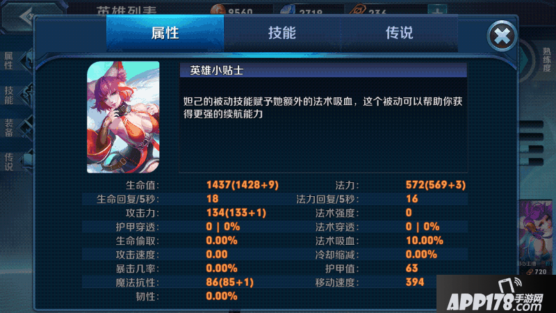 被动:妲己觉醒天狐血脉,自身附带额外10%的法术吸血。
