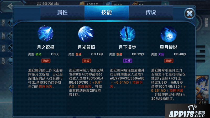 被动:迪安娜的第三次攻击会附带月之祝福,自动追踪附近的敌人对其进行打击,造成30%自身攻击力的物理伤害