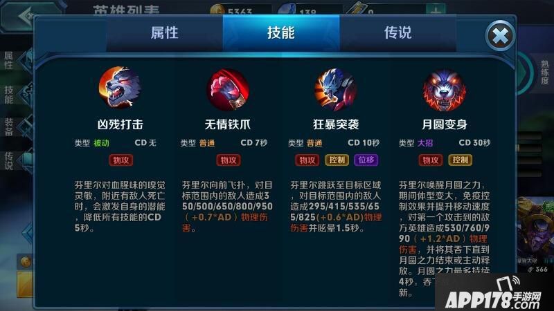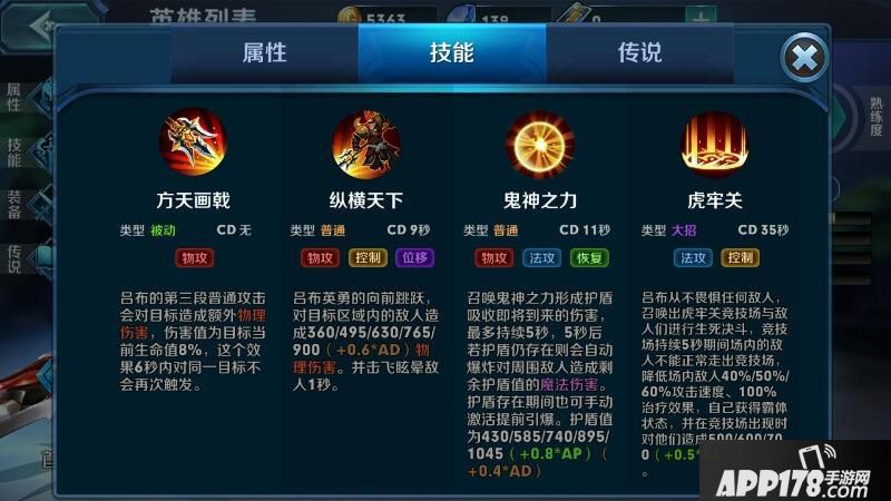 在游戏英雄里面看详细数据,技能看下图