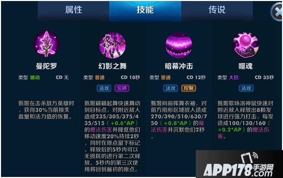 噬魂(大招):甄姬歌咏洛神赋快速对附近敌人释放出法球进行强力打击,每发造成魔法伤害。