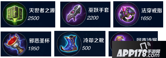 灭世者之源,巫妖手套,法穿戒指,邪恶圣杯,冷却之靴,回声沙漏