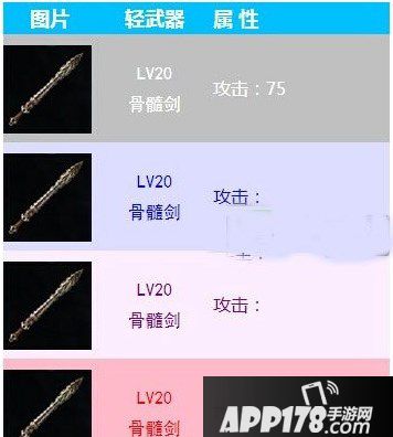 骨髓剑的等级是20级,拥有的攻击力是75点。装备之后可以增加自己的攻击力。