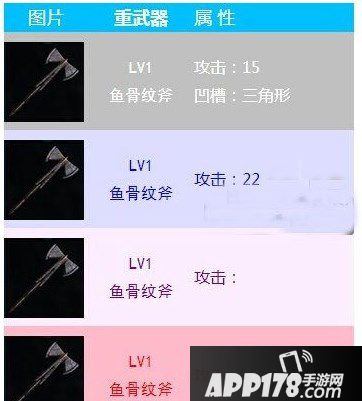 2、鱼骨纹斧攻击力22点,凹槽形状三角形。