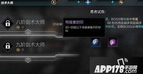 在剑术大师玩法中,奖励主要是升阶石和紫封印,无论战斗结果如何,都能获得升阶石,但只有成功击杀BOSS才能获得紫封印。不同难度区间段的剑术大师,挑战奖励的升阶石和紫封印品质不同,如一阶至三阶难度奖励是初级升阶石和初级紫封印,四阶、五阶难度为中级升阶石和中级紫封印,六阶、七阶难度为高级材料,八阶、九阶难度为特级材料。