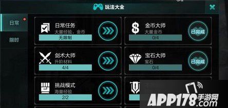 《无尽之剑命运》日常任务和成就任务、主线任务、支线任务一样有快捷通道,可直接前往对应的可完成对应日常任务的系统中。如果日常任务已经成功完成,快捷通道“前往”将会被关闭,显示为“已完成”状态。