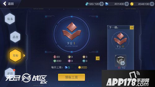 野火战士在军团中的地位由军衔代表,提高军衔可以提升基本属性,在特定军阶突破时,主角会获得永久性的高级属性加成,如暴击提升5%等。提升军衔需要消耗野火勋章,勋章可由副本,活动等途径获得,主角根据军衔每日可以在军团内领取工资,包括金币和道具等。