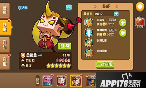 消耗技能点和金币升级技能,技能点有上限值,每6分钟恢复1点,消耗钻石可以换取技能点。