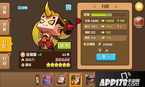 消耗英雄碎片和进阶石,英雄碎片可以从精英副本掉落获得,进阶石可以从集市购买,或者回收英雄获得。升阶可大幅度提升战力。