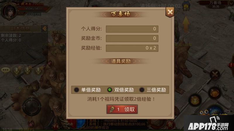 3、日常活动:万兽场-每日可以进行3次,可获得高额经验,VIP4可以参与4次,VIP7可以参与5次,沃玛令牌可以获取2倍经验和金币,使用元宝可以获得3倍经验。