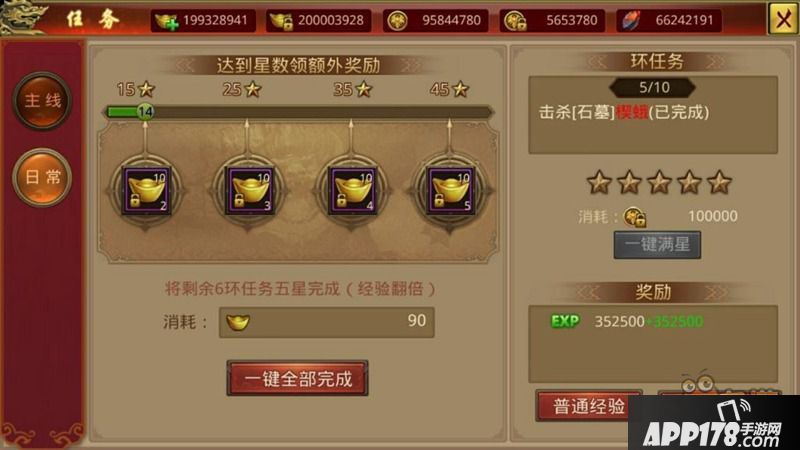 Tips:一键满星之后领取普通经验可以获得双倍经验,花费5元宝可以获得普通经验基础上的双倍经验!