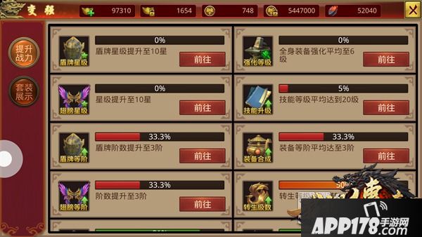 变强:为玩家强化提供最基本的方向。游戏的强化系统比较复杂,对于新手玩家来说,并不一定了解目前等级能够实行的强化。点击变强,就可以根据里面罗列的内容,开始收集资源,变得更强。