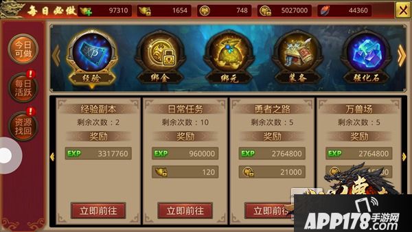 每日必做:为玩家罗列出每日必须要完成的任务。如果玩家感觉无事可做,那么进入每日必做栏目,检查一下是否已经完成所有必须要做的项目。