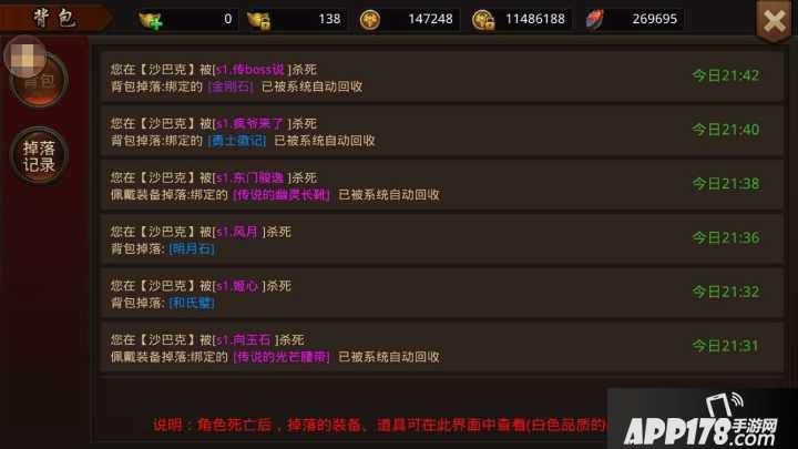 另外被击杀后,如掉落装备,可点击背包查询掉落记录,被同一玩家多次击杀后系统将自动添加对方进入仇人名单,君子报仇十年不晚,将敌人记在小本本上,以后方便自己报仇!