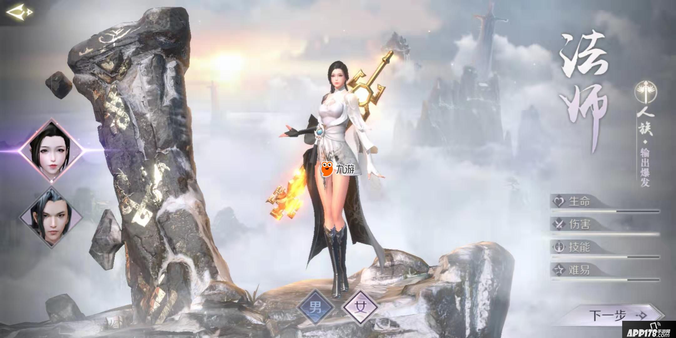 人族法师:远程法术攻击,生命值低,但是攻击很高,有着很大范围的AOE法术输出,PK中只要控制与对方的距离就很容易获胜,这是一个比较适合平民玩家的职业。