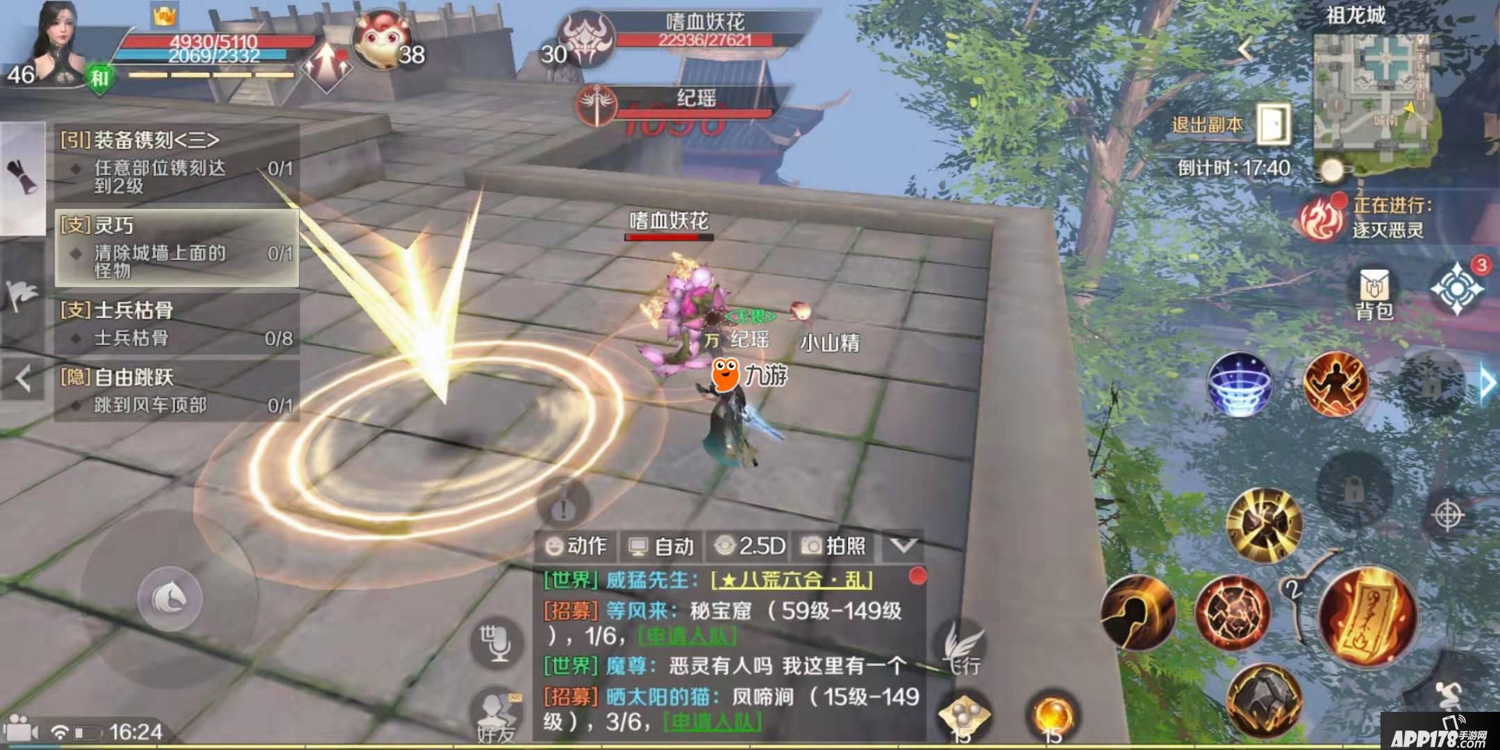 之后从塔顶直接四段跳到城南墙上就可以看到怪物了。怪物嗜血妖花攻击不高,轻松可以消灭。消灭之后回去交任务就可以啦。