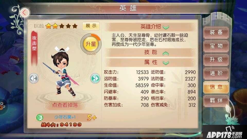 ①少年石✘,自身感觉这家伙既肉输出又高!好升星,谁用谁知道,站在中间前面第一位,最好的装备给他没错!宝物搭配后卫协助,带变狼,有变大猩猩的就用,大猩猩强力,主要单体秒前排,群攻打中排全部,如果变身又触发协助,那伤害杠杠的!