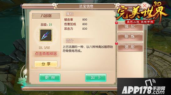 法宝和装备一样,也是可以进一步强化、祭炼和开发潜能的