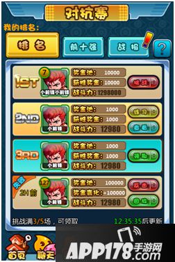 玩家与玩家在竞技场中,可以相互挑战,并获得排名,可以较为清晰的了解自己游戏竞赛的排名。