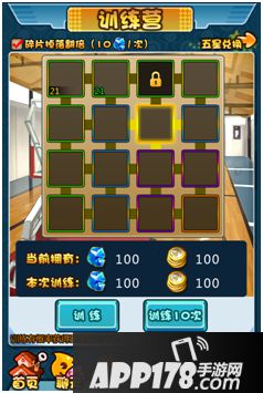 通过随机走格子的方式,随机获得技能卡牌或训练碎片,也可以通过积累训练碎片兑换高品质技能卡牌。
