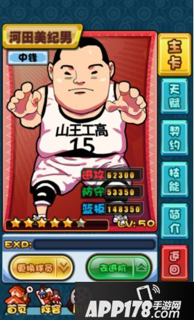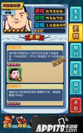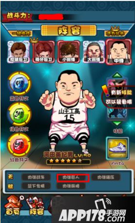 第一步、进入阵容界面,以小胖子“河田美纪男”为例。(若背包中有激活天赋所需要的球员卡牌时,下方天赋技能就会闪烁)
