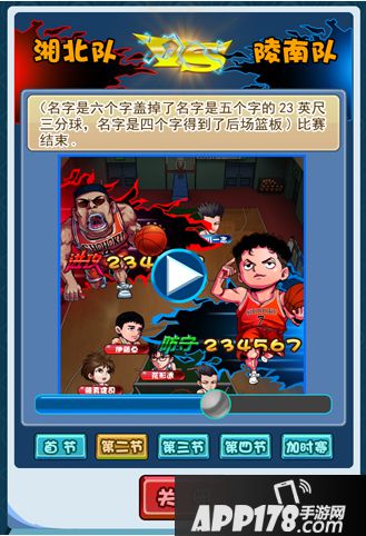 这款游戏是以灌篮高手为原型制作的一个卡牌类游戏,游戏在强调画面的同时加强剧情,提高游戏的可玩性,画面略带Q版,加强了人物的可爱性。