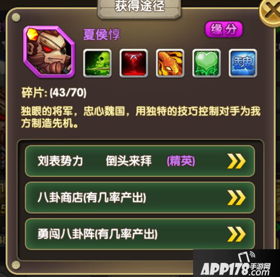 夏侯渊是夏侯惇阵容的必备后援。在商店会刷新夏侯渊碎片,八卦也有产出。