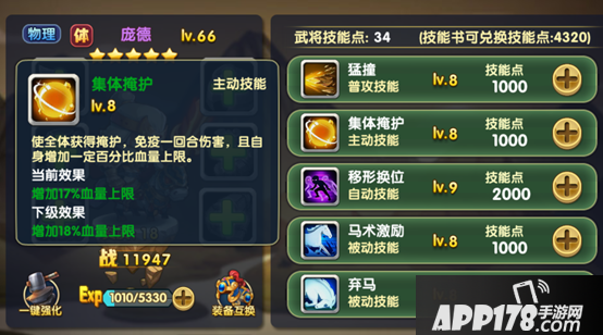 点评:唯一一个带全队无敌的武将!前中后都可以作为主力武将上场。也是骑兵队的主力。保值度超高的二星武将。