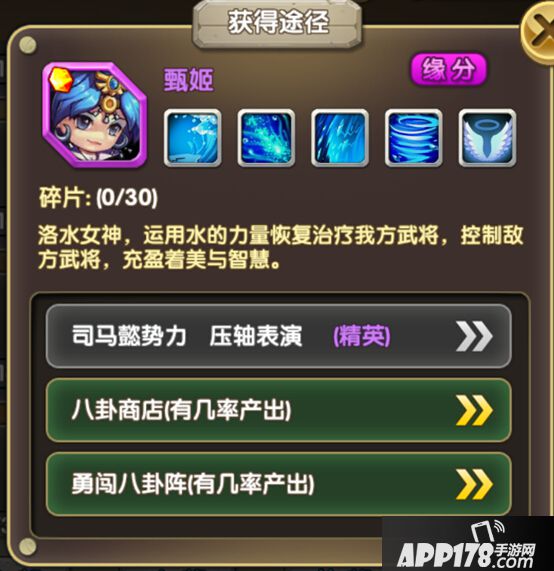 甄姬,这是大魏目前唯一的治疗,也是非常美丽非常抢手的武将。经常看到很多队伍带着她。升星难,碎片在商店和八卦阵中产出,目前来看升星要多去商店多参加活动。
