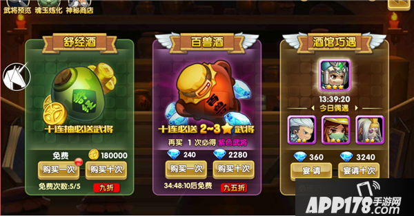 在酒馆中,可以通过抽卡的方式获得武将和装备等,能最快捷的提升主公实力。抽卡将消耗金币或钻石,使用钻石抽取的物品也会更好。