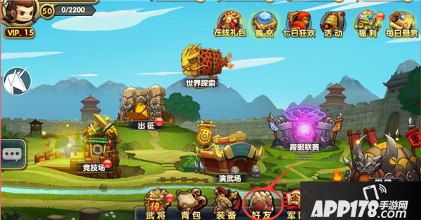 武圣关云长游戏中也包含了竞技场、炼化炉、军团和好友以下几种系统哦。