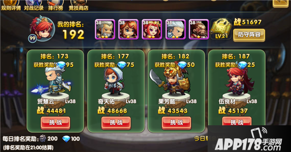 防守:在你着急提升排名的同时,一定不要忘记了防守阵容的随时更新,这个是我们有时候会忽略的点,因为在梦梦打拼竞技场的时候还是不乏遇到那些防守阵容很菜很菜的主公哟,这个肯定是忘记弄了的,很严重的问题的呢~