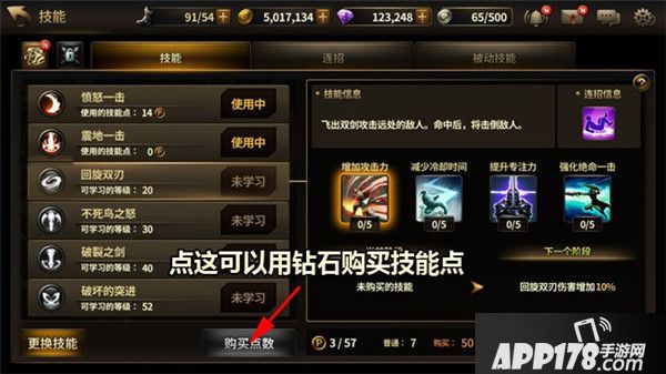 所有的技能都可以通过技能点来进行强化,技能点没升级1获得1个技能点,技能点也可通过钻石购买获得。
