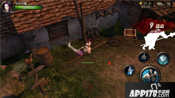 旋风打:将敌人挂在镰刀上挥舞后,将其甩出,造成击倒。