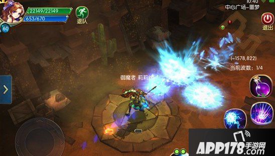 普通攻击旁的4个按钮为技能按钮,每个职业都有数个威力强大的技能,效果千变万化。点击按钮即可释放技能,释放技能需要消耗法力,法力不足则不能释放技能。