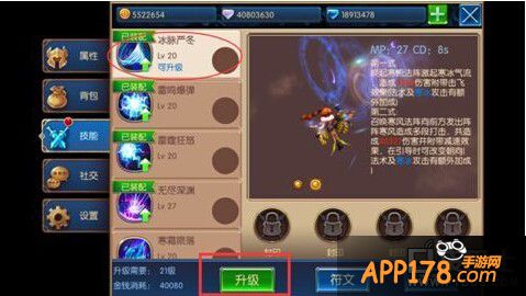 先选取要升级的技能,点击“升级”即可。