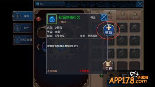 点击符文背包中的符文选择“镶嵌”,可将符文镶嵌在技能中
