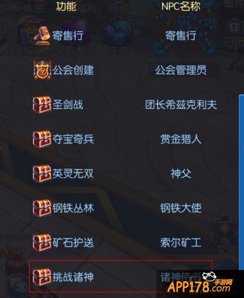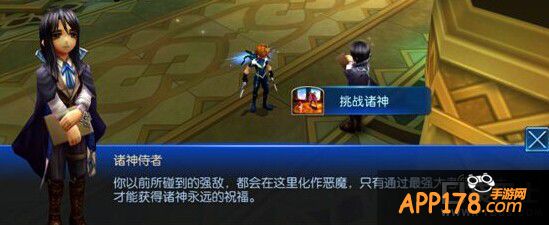 跟诸神侍者对话,即可开启挑战诸神活动