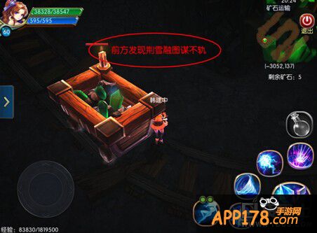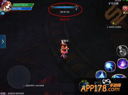 上方会显示一个时间进度条,需要在时间结束之前,打掉矿车