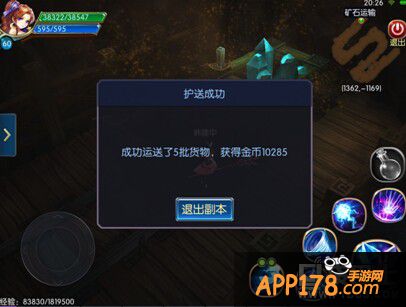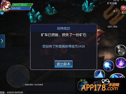 打掉矿车后则劫掠成功,获得矿石并转换成金钱,退出地图