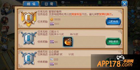 日常任务顾名思义就是每日必须做的任务,当主线任务卡主,等级升不上去时,也就是所谓的卡级来临的时候我们就要点开日常任务,来获取经验来升级,日常任务每天有免费刷新次数,和日常任务领取次数,领取次数随着vip等级提升而提升,并且分为五个等级1-5星,因为5星为红色又称为刷红,当然对于平民玩家刷红是件很困难事情,平民的话建议大家三星以上任务就果断做吧,如果遇到红票,果断做了它,经验绝对唰唰的。