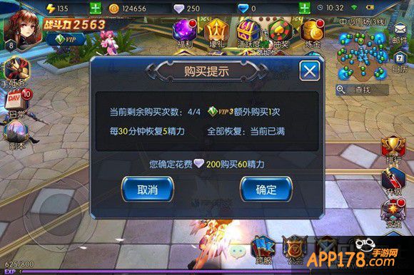 2、钻石购买:使用200白钻(蓝钻)可以购买60精力,每日可以购买4次,购买次数随着vip等级提升而提升(VIP3可以额外购买一次)