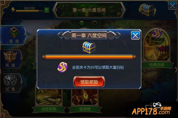 机智的玩家一定看到了,在副本章节名称的右边有个宝箱的按键。如果此章节全部关卡评价都为双S,就可以打开宝箱,宝箱中含大量白钻。前期的副本要得到双S评价还是蛮容易的。后期的副本要注意自己的走位,还有技能的衔接。