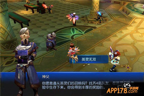 无双剑姬手游英灵无双活动要找神父对话开启。神父的建议也是找齐4名队友一起去打英灵无双活动副本。