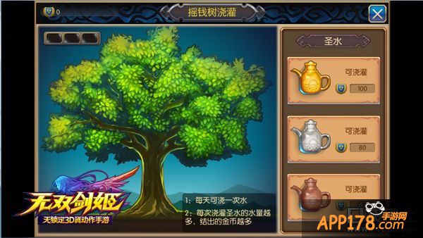 公会升到二级后,姬友们可以在公会NPC中点摇钱树自动寻路,每天都可以给摇钱树浇一次水,同时可以获得大量金币,当摇钱树左上角的进度条满了之后,还可以收获更多的金币哦。