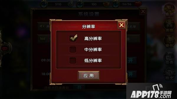 2.点击分辨率按钮,进行游戏的分辨率设置,游戏优化这方面做得非常优秀,小编建议玩家们将分辨率设为“高”。